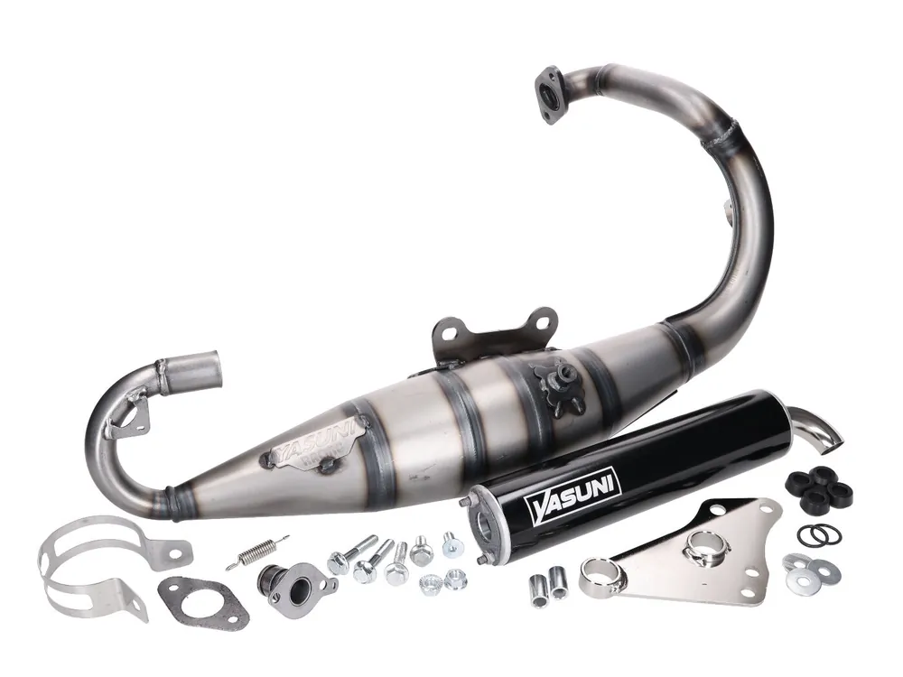 Yasuni Carrera 21: High-End racing avgassystem för Minarelli-motorer. Ökad toppfart, komplett med svart anodiserad ljuddämpare.