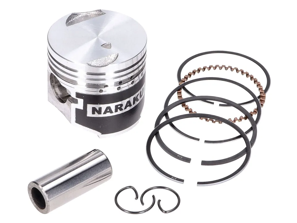 Komplett kolvkit för Piaggio 4-takt 3-ventil, inkl. kolvringar, kolvbult och clips. Passar original eller Naraku ersättningscylinder.